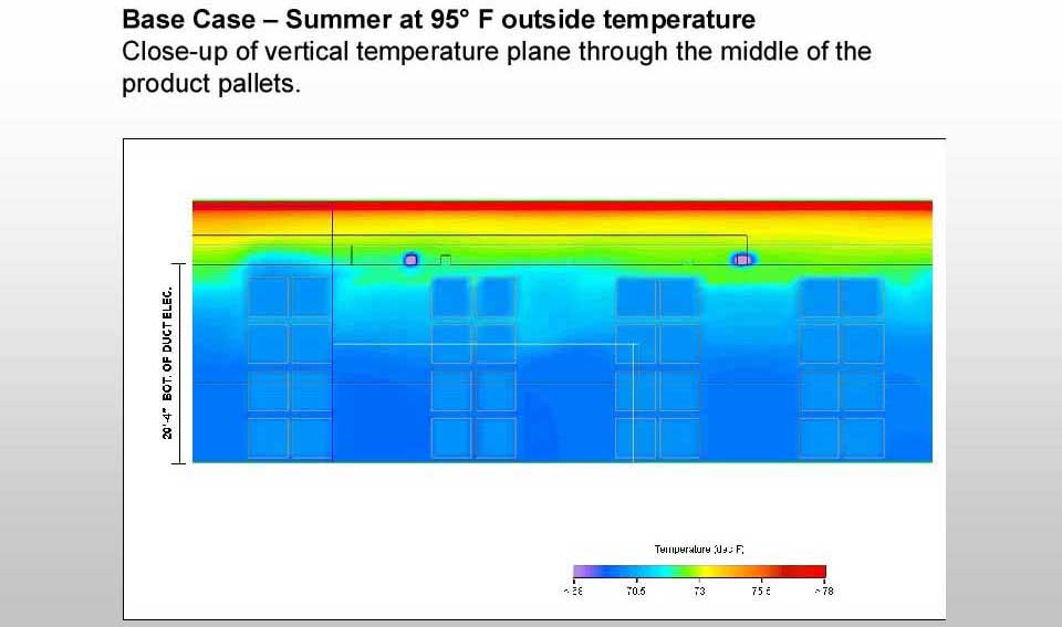 The accompanying thermal images were developed from the temperature controlled warehouse of a major pharmaceuical company. The company’s new 50,000 sq t. warehouse facility in Louisville, KY did not pass the Food and Drug Administraion’s required Temperature Validaion Tests with the originally designed HVAC system.