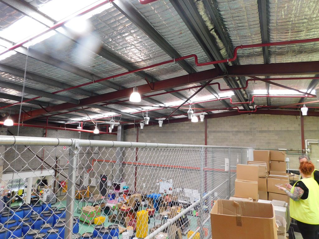 Lush Cosmetics Manufacturing had a significant summer overheating problem in their Warehouse and distribution facility. Based on Airius’ proven success for cooling in other warehouses and sports courts, they approached Airius to come up with a cooling solution. After some detailed research by Lush and design work by Airius, and a successful trial installation, Lush Cosmetics installed over 120 Airius Air Pear fans to provide cooling to their employees in February, 2018.