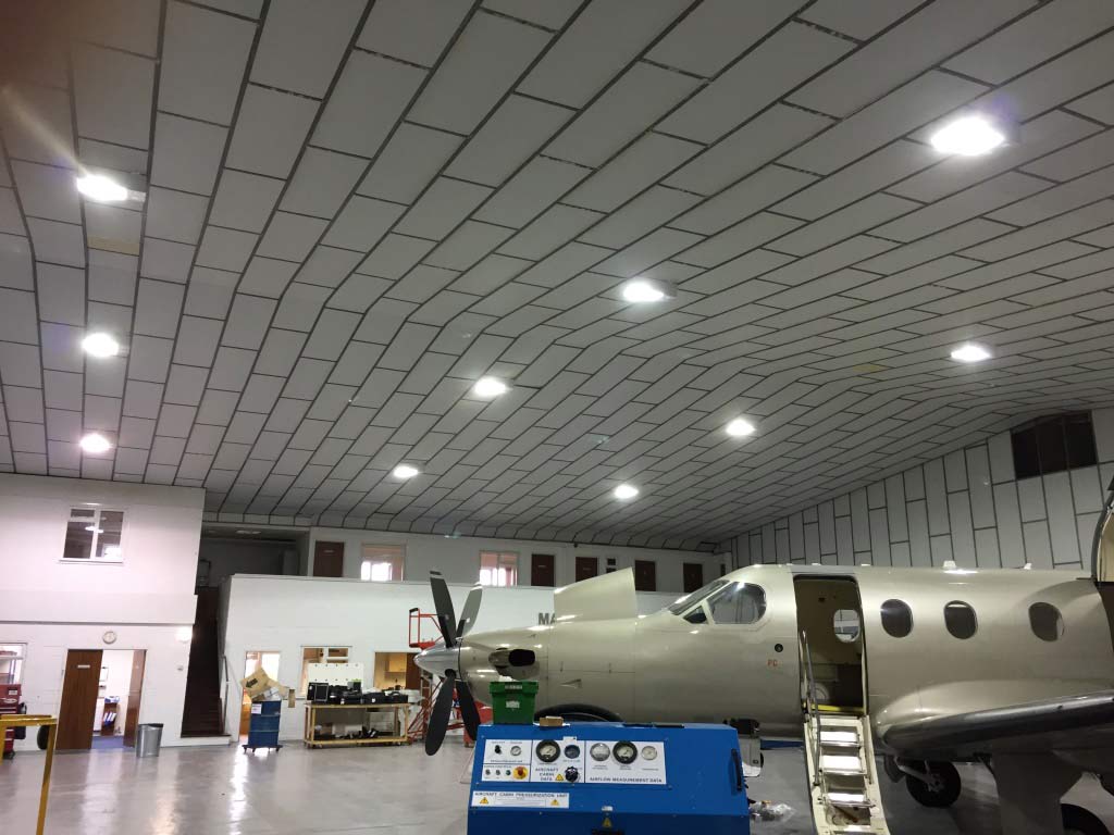 After performing an energy audit we supplied the client with our results and huge cost savings available as well as Dialux plans to show the massive increase of LUX levels that we would be able to achieve. This was particularly important due to the nature of specialist works involved when the technicians were servicing the aircraft engines.