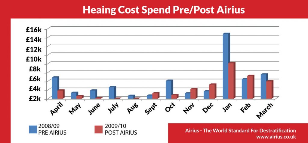 Following installation of the Airius system desired conditions were easily achieved and maintained, yet the workload from the HVAC system was also reduced, so much so that the system paid for itself in under 18 months.