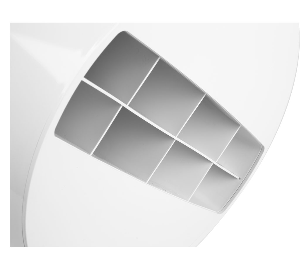 This makes it simple to handle and fit, even into tight aisle and counter areas, without disrupting sightlines or layouts, unlike traditional box, HVLS or blade fans. Its discreet profile blends into any setting and adapts effortlessly to changing floorplans, maintaining airflow efficiency while preserving the visual and functional flow of every space.